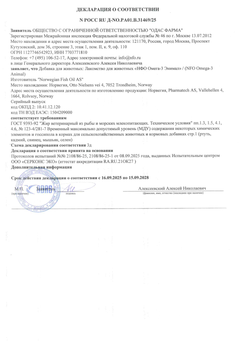 NFO Омега-3 Animal (для животных)