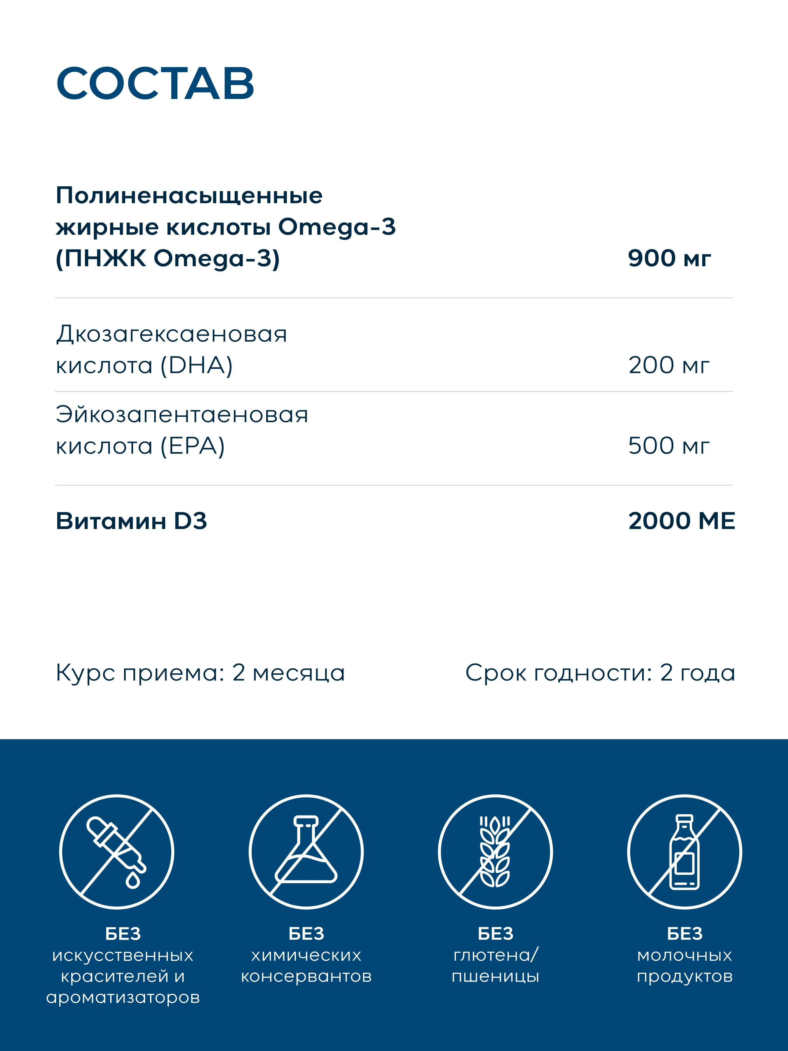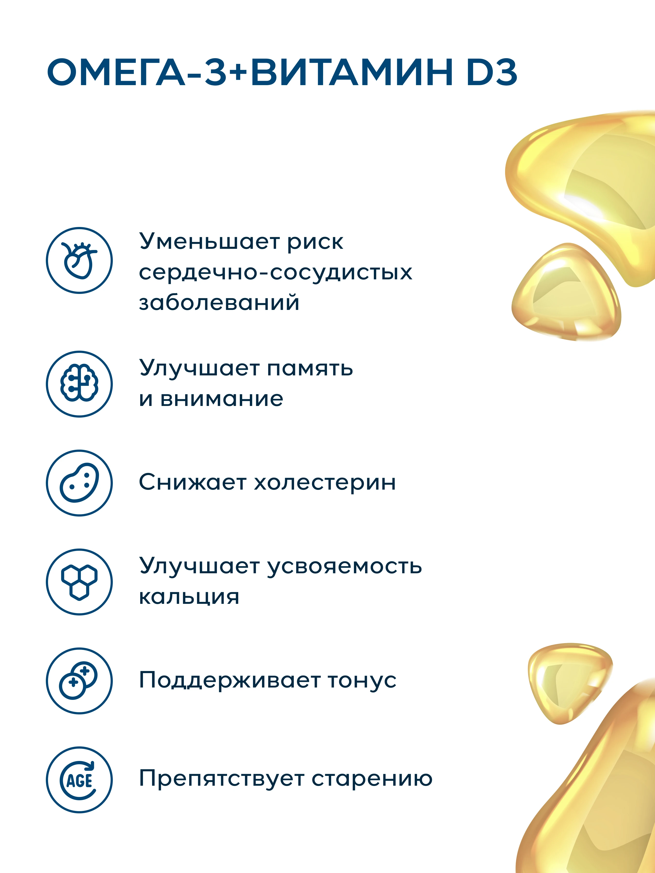 Омега-3 ПНЖК и витамин D находятся в комплексе в максимально биодоступной форме: при попадании в организм быстро всасываются и кратно усиливают действие друг друга.